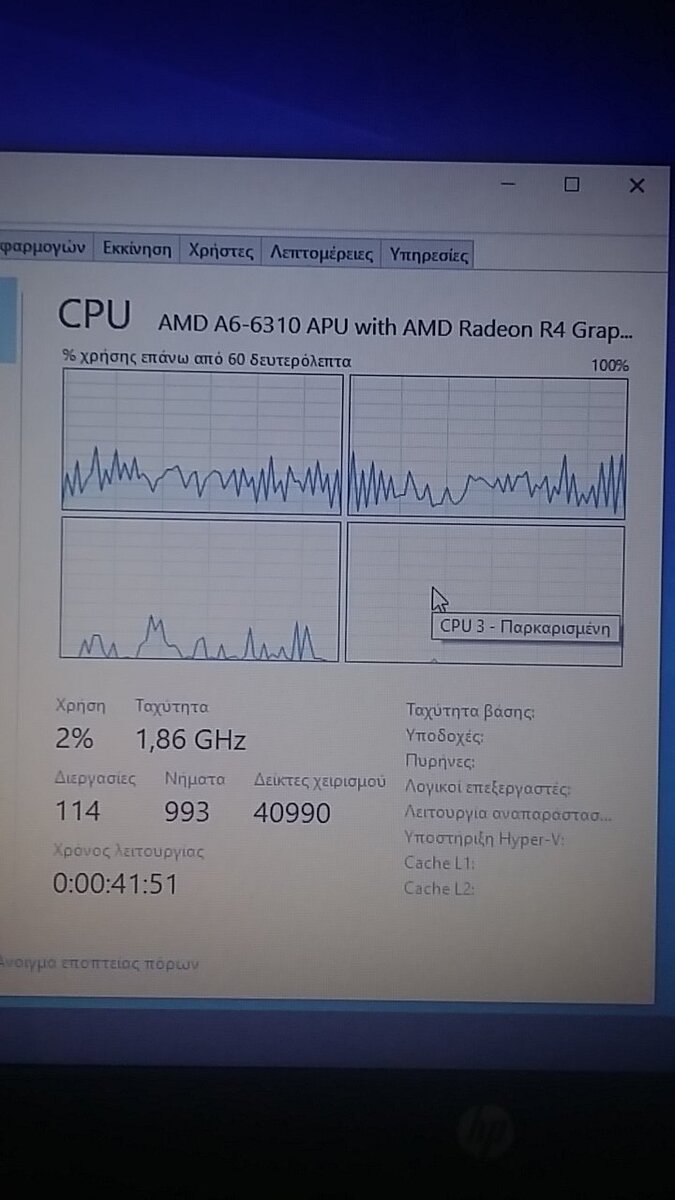 plakou21r Δημοσ. 28 Ιανουαρίου 2021 Δημοσ. 28 Ιανουαρίου 2021 Καλησπερα παιδια μια βοηθεια πλζ. Επειτα απο format σε laptop hp και την ολοκληρωση εγκαταστασης των win10 ολα ηταν μια χαρα. Μολις το επανεκινησα αρχησε να λαγκαρει...ενα δευτρεολεπτο κολλαει ενα ξεκολλαει...μονημα. ο τεχνικος στο πλαισιο ειπε οτι φταιε ο σκληρος. Τον αλλαξα με ssd αυξησα και την ram σε 8gb και παλι τα ιδια.. δειτε και το γραφημα στις φωτο...