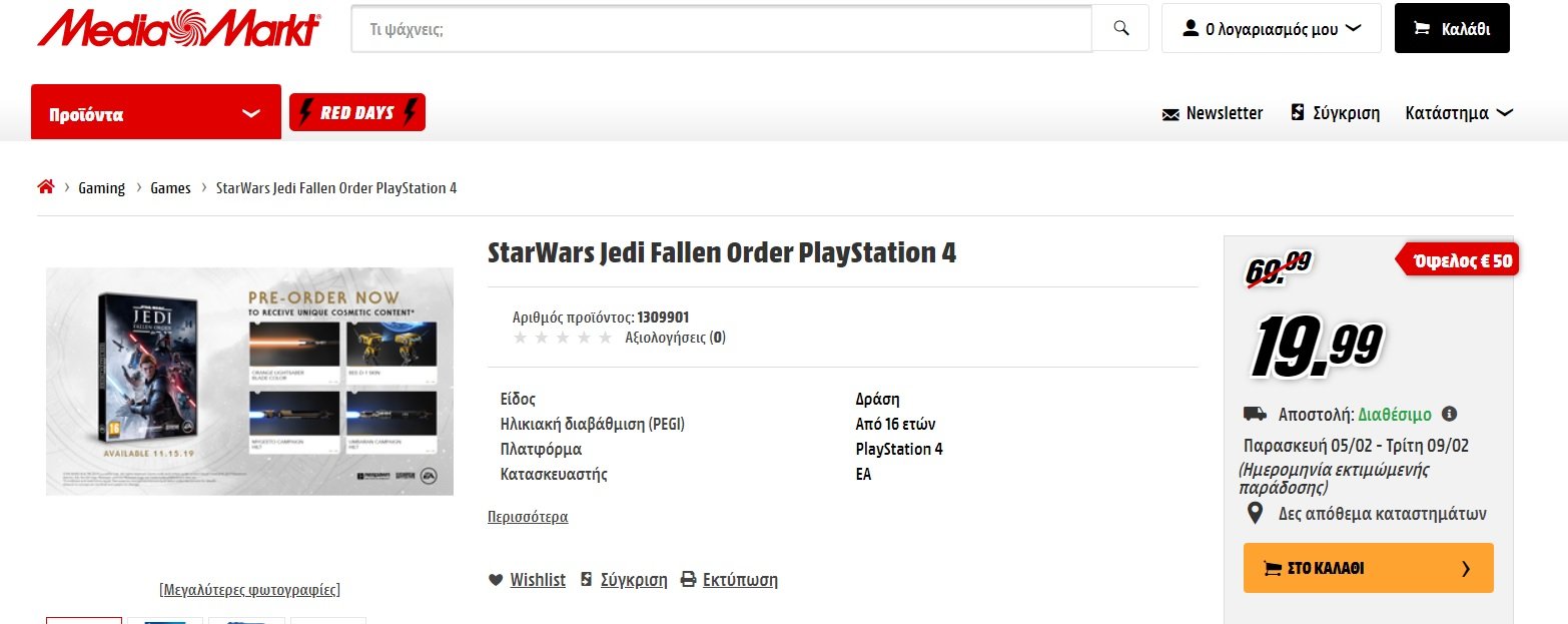IcemanGr71 Δημοσ. 2 Φεβρουαρίου 2021 Δημοσ. 2 Φεβρουαρίου 2021 (επεξεργασμένο) StarWars Jedi Fallen Order PlayStation 4 - 19.99€ https://www.mediamarkt.gr/product/gaming/games/starwars-jedi-fallen-order-playstation-4/1309901 https://www.skroutz.gr/s/18390868/Star-Wars-Jedi-Fallen-Order-PS4.html Επεξ/σία 2 Φεβρουαρίου 2021 από IcemanGr71 1