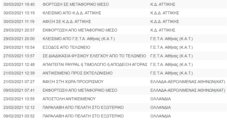 MaXmaD Δημοσ. 31 Μαρτίου 2021 Δημοσ. 31 Μαρτίου 2021 (επεξεργασμένο) Απο 7 Φεβρουαριου , σημερα 31/3 εφυγε απο ΓΕΤΑ. Αρχικη παραγγελια 20/12/2020. Tracking με NL στο τελος. Επεξ/σία 31 Μαρτίου 2021 από MaXmaD