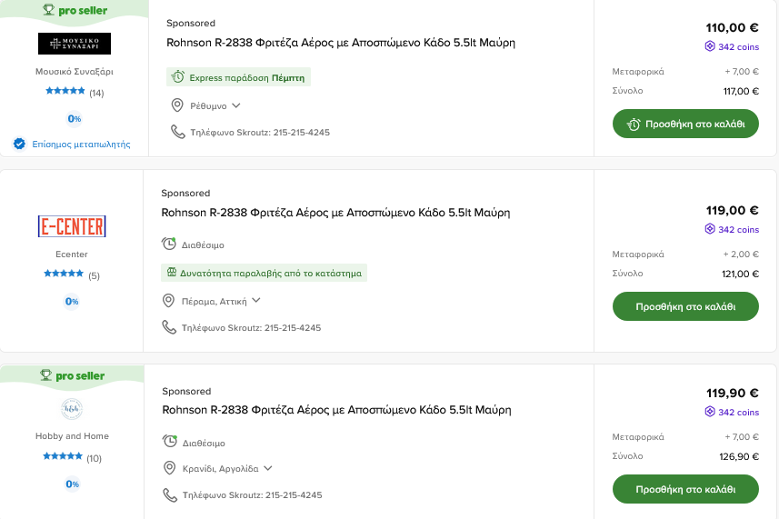manolis940 Δημοσ. 15 Νοεμβρίου 2023 Δημοσ. 15 Νοεμβρίου 2023 14 ώρες πριν, CakeNet είπε Έχει παρατηρήσει κανένας άλλος ότι μετά την τελευταία μας ανανέωση σύμφωνα με τους νέους όρους, παίζονται ακόμη πιο περίεργα "παιχνίδια" με τα μεταφορικά όταν είναι εκτός των ορίων; Δηλαδή, για τα ίδια προϊόντα, υπάρχουν διαφορετικά έξοδα αποστολής και ανάλογα με την απόσταση του αποστολέα, αλλά και του παραλήπτη, γενικά είναι λίγο περίεργο. Παραθέτω 2 παραδείγματα για το ίδιο προϊόν, 1 για το σπίτι μου και ένα για το πατρικό μου: Αρχικά έχεις skroutz plus ? Αν τα βάλεις στο καλάθι επιλέγοντας τα από αυτή την λίστα έχουν διαφορετικά μεταφορικά κάθε φορά; Είναι πολύ πιθανό να έχεις επιλέξει αγορές μέσω skroutz και απλώς δεν σου εμφανίζει το μπλε κουμπί για να πας στην Σελίδα του καταστήματος. Ταυτόχρονα όμως τα μεταφορικά να αναφέρονται στην τιμή της αγοράς χωρίς καλάθι του skroutz.