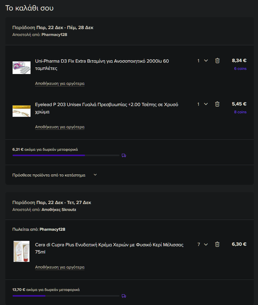Arkin Δημοσ. 20 Δεκεμβρίου 2023 Δημοσ. 20 Δεκεμβρίου 2023 Βρηκαμε το μπελα μας με αυτο το πραγμα με τις αποθηκες skroutz. Δηλαδη ιδιο καταστημα και βαζει ξεχωριστη παραγγελια. Και οκ στειλε 2 παραγγελιες μετρησε ομως 20 ευρω συνολο οχι καθε παραγγελια ξεχωριστα. Αυτες τις βλακειες δεν μπορω. 3