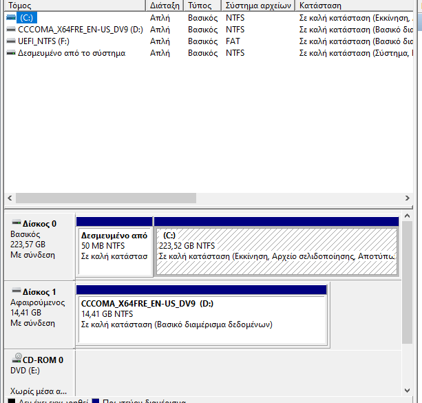 vagotron1995 Δημοσ. 2 Ιουλίου 2021 Μέλος Δημοσ. 2 Ιουλίου 2021 8 λεπτά πριν, k_w_t είπε Δεν νομιζω να υπαρχει τετοιο προβλημα. Αλλο πραγμα φταιει. Το flash σου πρεπει να εχει 2 partition οταν το φτιαξει το rufus. 1 που λεει πχ CCCOMA_X64FRE_EN-US_DV9 και 1 που λεει UEFI_NTFS Δεν ξέρω αν σε βοηθάει αυτό.