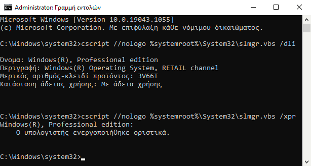 1ns0mn1a Δημοσ. 13 Ιουνίου 2021 Δημοσ. 13 Ιουνίου 2021 (επεξεργασμένο) αν είναι MAK key, ξέχνα το cmd cscript //nologo %systemroot%\System32\slmgr.vbs /dli cscript //nologo %systemroot%\System32\slmgr.vbs /xpr output ? https://docs.microsoft.com/en-us/previous-versions//ff793433(v=technet.10) /upk Επεξ/σία 13 Ιουνίου 2021 από 1ns0mn1a 1