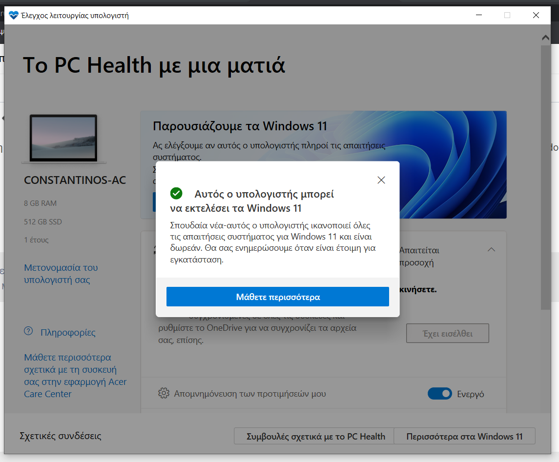 Anakha Δημοσ. 5 Ιουλίου 2021 Δημοσ. 5 Ιουλίου 2021 https://github.com/rcmaehl/WhyNotWin11/releases/latest/download/WhyNotWin11.exe Δοκίμασε αυτο το προγραμματάκι. Έχουμε παρόμοια specs.