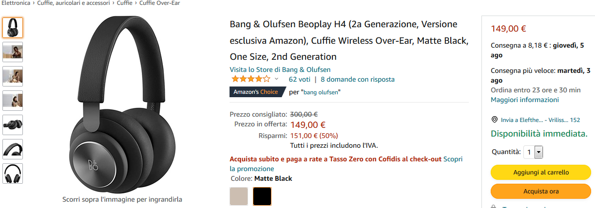 mcgerger Δημοσ. 27 Ιουλίου 2021 Δημοσ. 27 Ιουλίου 2021 (επεξεργασμένο) Πρόκειται για ιστορικό χαμηλό και μάλιστα με πολύ καλή έκπτωση στα Amazon Ιταλίας και Ισπανίας. Νομίζω δεν χρειάζεται να περιγράψω κάτι. Να σημειώσω μόνο ότι αναφέρει (Amazon Exclusive Edition), δεν γνωρίζω όμως τί σημαίνει αυτό. https://www.amazon.it/gp/product/B086NGHV99/ https://www.amazon.es/dp/B086NGHV99 Αρχική με την έκπτωση 149€. Τελική με μεταφορικά και φόρο 159.62€. Από 300€ Skroutz επίσης στα 299€ https://www.skroutz.gr/s/12014076/Bang-Olufsen-Beoplay-H4-Ασύρματα-Over-Ear-Ακουστικά-Μαύρα.html Είναι η 1η μου δημοσίευση στις προσφορές, αν έχω κάτι λάθος μου το λέτε... Επεξ/σία 27 Ιουλίου 2021 από mcgerger 3