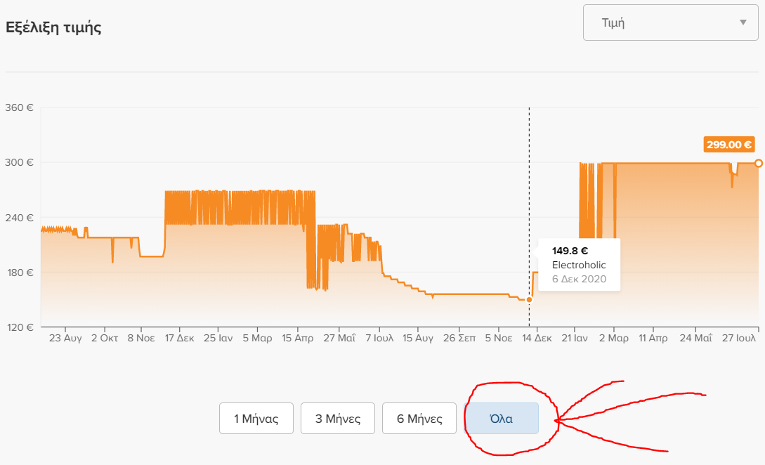 giorginho Δημοσ. 28 Ιουλίου 2021 Δημοσ. 28 Ιουλίου 2021 (επεξεργασμένο) 7 ώρες πριν, mcgerger είπε Για το skroutz δεν υπάρχει ιστορικό για 1+ χρόνο πίσω, συνεπώς δεν μπορούμε να διαπιστώσουμε πόσο χαμηλή ήταν η τιμή τους τότε, αλλά νομίζω ότι αυτό δεν θα είχε πολύ σημασία. 7-8 μηνες και αλοιμονο αν δεν υπηρχε αυτο το ιστορικο, ενα (πανευκολο) κλικ ειναι... (default εμενα μου δειχνει 1 μηνα ιστορικο, μη μου πεις οτι πιστεψες ειλικρινα οτι δεν εχει παραπερα...) Και φυσικα και εχει σημασια, γιατι προκειται για τεχνολογικο προϊον, που γενικα φτανει στο "πικ" (για εμας ως καταναλωτες, δηλαδη στο "limit down") η τιμη του ειτε οταν βρισκεται σε αφθονια παραλληλα με σχετικα χαμηλη ζητηση στην αγορά (τον κανονα επιβεβαιωνει και το αντιθετο φαινομενο των μεγαλης ζητησης προϊοντων σε ελλειψη, των οποιων οι τιμες ανεβαινουν, δες πχ τι γινεται στα θεματα με τα PS5) και συνηθως καποια στιγμη ~1 χρονο απο την εναρξη της κυκλοφοριας του ειτε οταν στο τελος της "ζωης" του (ως μοντελο) εχει ξεμεινει σε μερικες μεγαλες αλυσιδες και για να ξεπουλησουν βαρεσουν (πολλες φορες σε συνεργασια με τον αντιπροσωπο/εισαγωγεα) την τιμη κατακεφαλα. Απλα τα B&O εχουν κι ενα "στατους" μαρκας στον χωρο τους, οπως πχ τα Apple στα κινητα, αν και η πορεια των τιμων τους δεν το δειχνει παντα αυτο. Βλεπεις λοιπον απο το ιστορικο γραφημα οτι τα 299 ευρω δεν ηταν καν η τιμη με την οποια βγηκε στην αγορα αυτο το μοντελο, μαλιστα δεν υπηρξε ποτέ η "νορμαλ" τιμη του συγκεκριμενου μεχρι να "ξεμεινει" (λογικο αφου πλεον πανε 2 ολοκληρα χρονια απο την κυκλοφορια του) σε αυτα τα 2-3 μαγαζια... Μαλιστα η μεγαλυτερης διαρκειας συνεχομενα σταθερη τιμη ηταν τα 155 ευρω (επι 2,5 μηνες), επισης χαμηλοτερη απο την τωρινη τελικη μεσω αμαζον. Ξαναλεω δεν σχολιασα την προσφορα, απλα την "συμπληρωσα" με ενα στοιχειο που η πλειοψηφια πιστευω θεωρει σημαντικο. Εμενα τουλαχιστον η "οπτικη" μου ως προς το "wow factor" της τιμης αλλαξε αρδην μολις ειδα λιγο καλυτερα τα ιστορικα... πχ σε ΗΒ. (οπου επαιξε και στις 125 λιρες προχθες στο αμαζον) Ή στην Γαλλια... Επεξ/σία 28 Ιουλίου 2021 από giorginho 1