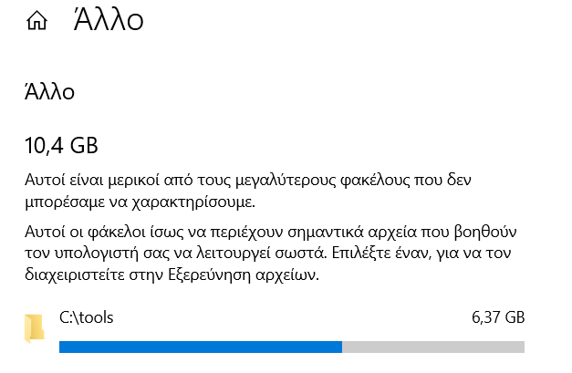 tzitzikas2 Δημοσ. 13 Σεπτεμβρίου 2021 Μέλος Δημοσ. 13 Σεπτεμβρίου 2021 επίσης ο C:\tools τί είναι που πιάνει 6,37GB? ευχαριστώ!