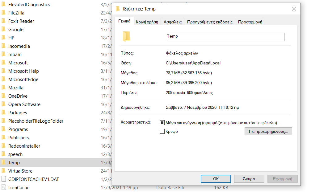 tzitzikas2 Δημοσ. 13 Σεπτεμβρίου 2021 Μέλος Δημοσ. 13 Σεπτεμβρίου 2021 3 λεπτά πριν, tedybear είπε Υπάρχει ένας υποφάκελος Temp στον Local με προσωρινά αρχεία. Τουλάχιστον αυτός αλλάζει καθημερινά ανάλογα τις εφαρμογές που χρησιμοποιείς και τα προσωρινά αρχεία που αυτές αφήνουν εκεί. Επέλεξε ό,τι υπάρχει εκεί και διέγραψε ό,τι σε αφήνει να διαγράψεις. Θα σου ζητήσει να το κάνεις ως administrator (OK αυτό) και αρχεία που είναι σε χρήση δεν θα σε αφήσει να τα διαγράψεις (ΟΚ και αυτό). Τα υπόλοιπα μπορούν να φύγουν. Το ανωτέρω πρέπει να γίνεται πιο απλά και αν ακολουθήσεις τις οδηγίες που έδωσε ο micos000. Απλά να τσεκάρεις και το "Temporary files" (προ-τελευταία επιλογή) στο αρχικό παράθυρο που θα σου ανοίξει πριν πατήσεις το ΟΚ. καλησπέρα και ευχαριστώ. Ο temp στον Local είναι μόνο 78MB, δεν έχει πρόβλημα. δες την εικόνα. Αν υπάρχει θέμα κάτι αλλο είναι.