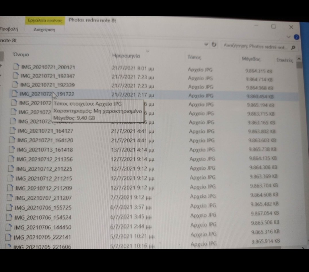 tourist23 Δημοσ. 12 Σεπτεμβρίου 2021 Δημοσ. 12 Σεπτεμβρίου 2021 Καλησπέρα σε όλους, αντιμετωπίζω το εξής πρόβλημα: πήγαμε να μεταφέρουμε 2000 φωτό από το κινητό στο netbook.Αυτό δυστυχώς μάλλον είχε πάρα πολύ λίγο χώρο (κάτω από 5gb - σύνολο ο δίσκος είναι 32gb) και μετά από 10 λεπτά μόνο ενώ έδειξε ότι η διαδικασία ολοκληρώθηκε, οι φωτογραφίες είναι στο desktop αλλά με χωρητικότητα 9gb η Καθεμία. Υπήρχε και ένα διπλό μπλε βέλος πάνω τους , το οποίο αφαίρεσα με δεξί κλικ->ιδιοτητες-> να μη γίνεται συμπίεση αρχειων. Μετέφερα ενδεικτικά 1-2 σε άλλο pc & σε εξωτερικό δίσκο και δεν ανοίγουν ούτε εκεί. Ξέρετε τι μπορώ να κάνω? Και αν έχω ελπίδες να σώσω τις φωτογραφίες?