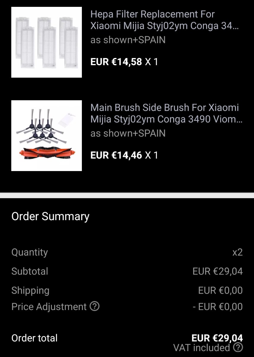 Επισκέπτης Δημοσ. 14 Νοεμβρίου 2021 Δημοσ. 14 Νοεμβρίου 2021 3 ώρες πριν, TechnoState είπε ...την βάζω διαρκώς όποτε φεύγω απο το σπίτι. Τα πάει μια χαρά ως τώρα. Εντάξει μια-δυο φορές υπηρξαν αστοχίες (μαύρα χάλια-λυσιμο με ταινία στους αισθητήρες κλπ- κόλλημα ανάμεσα στις καρέκλες της τραπεζαρίας- no vacuum zone κλπ) αλλά ακόμα μαθαίνουμε ο ένας τον άλλο. Προς το παρόν, αντί για δύο φορές το μήνα η σκούπα (κλασσική ηλεκτρική σκούπα) μπαίνει μία φορά το μήνα (κ σε χαμηλά σημεία όπου δεν μπορεί να προσεγγίσει η φιλιππινέζα). Με λιγότερα απο 30€ χτύπησα τα παρακάτω. Λογικά, εφοδιασμός για τουλάχιστον 2 χρόνια. (Θεωρητικά, απο Ισπανία δεν θα υπάρξουν επιπλέον χρεώσεις) Από που είναι αυτο?