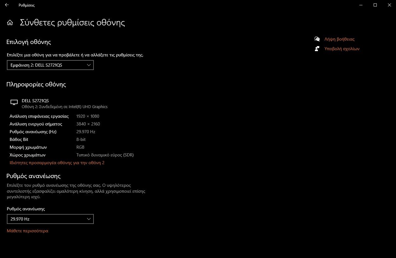 pvalakos Δημοσ. 16 Νοεμβρίου 2021 Δημοσ. 16 Νοεμβρίου 2021 (επεξεργασμένο) Συνδέω το λαπτοπ μου με το monitor που πήρα Dell S2721QS και δεν μου δείχνει καν τις επιλογές για ανάλυση.. Αυτόματα από μόνο του τρέχει σε 1080p.. το λαπτοπ είναι ικανό για 4Κ 30 hz, όλοι οι ντραιβερς είναι updated. Μήπως ξέρει κανείς τι πρέπει να κάνω? Βρέθηκε η λύση! Επεξ/σία 16 Νοεμβρίου 2021 από pvalakos