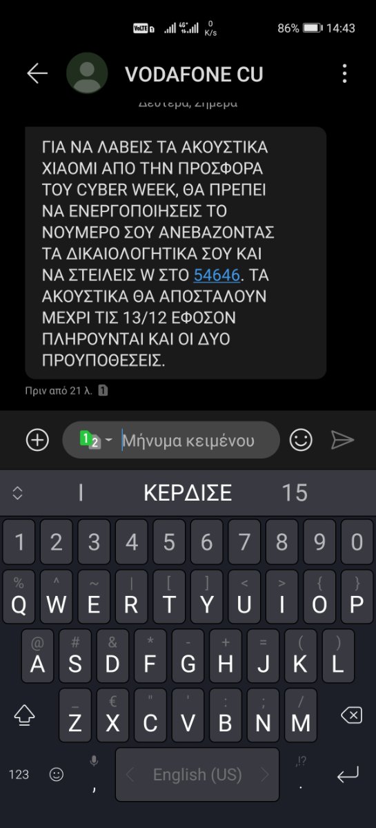 dimis_pj Δημοσ. 6 Δεκεμβρίου 2021 Δημοσ. 6 Δεκεμβρίου 2021 (επεξεργασμένο) 59 λεπτά πριν, dimitris1090t είπε Προσωπικά και τα 500gb που έδωσε με ταχύτητες download 5mbps δεν νομίζω να μπορέσω να τα καταναλωσω. Αλλα εντάξει δεν καταλαβαίνω γτ λέτε οτι μας κορόιδεψε... Έδωσε 15 ευρώ κουπόνι για αγορές απο 60 ευρώ σε Adidas. Έδωσε διπλασιασμό κάρτας και 500 γιγα + λεπτά ομιλίας και επίσης κάποιοι θα παραλάβουν και ακουστικά δωρεάν και όλα αυτά με 12 ευρώ δεν το θεωρώ άσχημη προσφορά. Όσο για τα ακουστικά μου ήρθε τώρα μήνυμα να στείλω sms τηβ λέξη W στο 54646. Δοκιμάστε και σεις να δείτε μήπως σας έρθει επιβεβαίωση για να γίνει αποστολή. αυτό το μήνυμα ήρθε και σε εμενα σήμερα που εχω παραλαβει και εχω στείλει το W και ελαβα απάντηση, απο τις 30 Νοεμβρίου ! 🤣 Μαλλον θα τα στείλουν τυχαία μέχρι να εξαντληθούν χαχα Επεξ/σία 6 Δεκεμβρίου 2021 από dimis_pj
