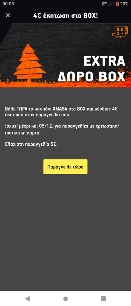 HERTHAN Δημοσ. 29 Νοεμβρίου 2021 Δημοσ. 29 Νοεμβρίου 2021 Παλικαρια μονο μεσα απο το app μπορεις να παραγγειλεις απο το box η γινεται και μεσω του site? Το ρωταω γιατι οτι κι αν κανω(εγγραφη,συνδεση κλπ) στο site με πεταει παντα στη αρχικη σελιδα.