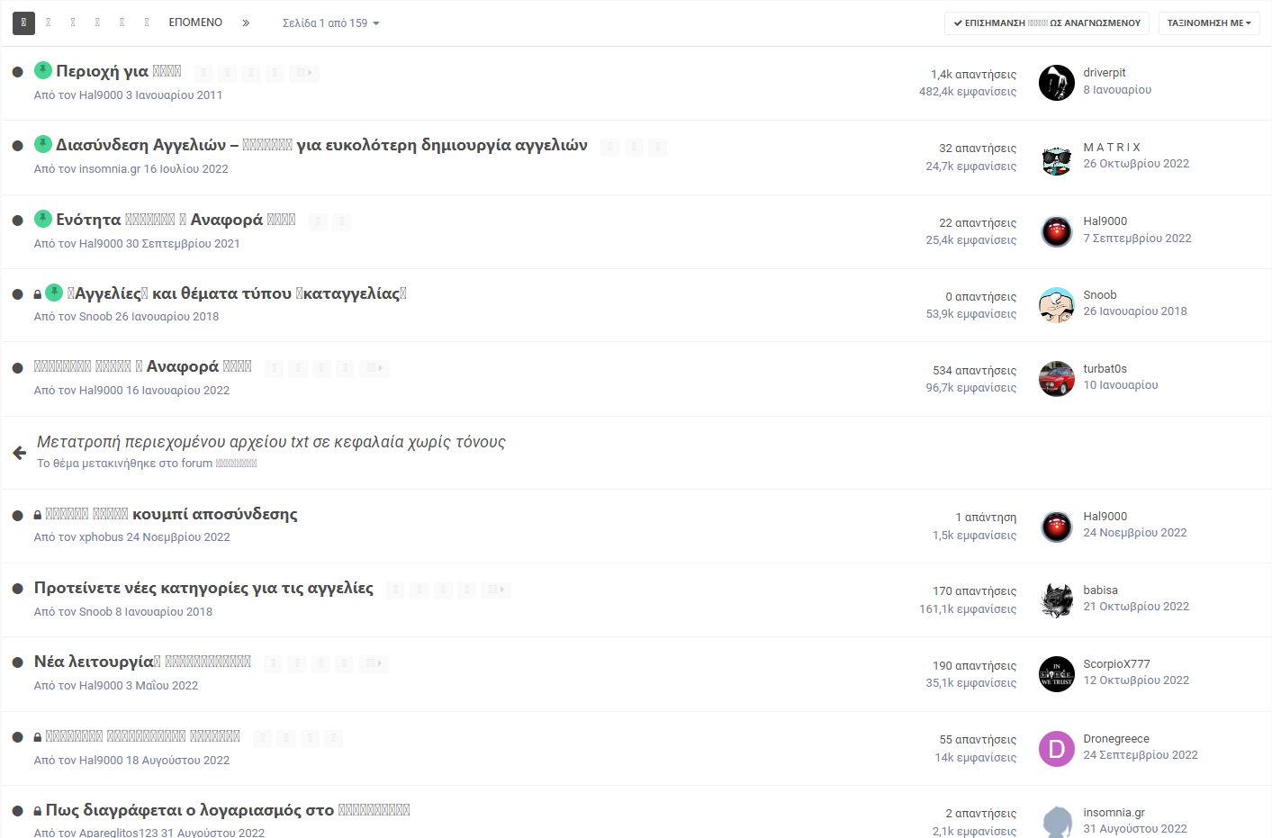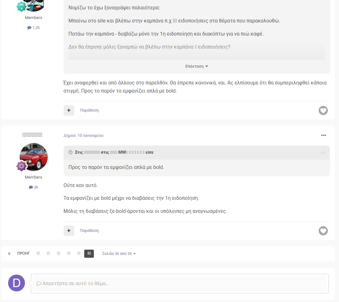 ilias78 Δημοσ. 23 Ιανουαρίου 2023 Δημοσ. 23 Ιανουαρίου 2023 2 λεπτά πριν, GoMaR είπε Στο κανει και σαν επισκεπτης η μονο οταν εισαι λογκαρισμενος ; Μόνο όταν είμαι λογκαρισμενος. Σας επισκέπτης το βλέπω κανονικά. Edit Εντάξει το βρήκα. Στο σημείο που γράφει "ΞΕΚΙΝΉΣΤΕ ΝΕΟ ΘΕΜΑ" αριστερά του έχει 2 επιλογές για την αλλαγή εμφάνισης των θεματων. Προφανώς από λάθος το άλλαξα.