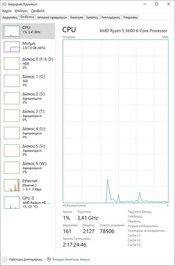 Deu164 Δημοσ. 9 Φεβρουαρίου 2022 Δημοσ. 9 Φεβρουαρίου 2022 33% cpu usage δεν είναι idle... Η κάποια διεργασία / εφαρμογή στο backround κολλάει ή η εγκατάσταση τον win γενικότερα τα έχει παίξει. Μπες στο tab διεργασίες και πάτα πάνω στη στήλη cpu για να σου ταξινομήσει τις εφαρμογές με βάση το cpu usage να δεις τι χρησιμοποιεί τον cpu Επίσης μπες και στο bios αν μπορείς μείνε εκεί 5-10 λεπτά και κοίτα να δεις πόσο θερμοκρασία πιάνει ο cpu σε σχετικά idle κατάσταση για να δεις αν δεν πάει και κάτι καλά με τη τοποθέτηση της ψήκτρας εκτός από τα windows