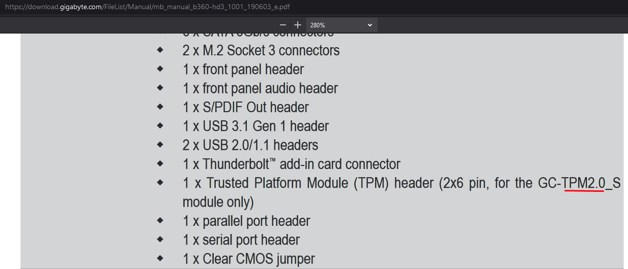 omokas Δημοσ. 23 Φεβρουαρίου 2022 Δημοσ. 23 Φεβρουαρίου 2022 Δές στη μητρική πάνω εάν ειναι συνδεδεμένο το TPM Module, αν όχι μπορεί να το έχεις στο κουτί της μητρικής εαν το έδινε μαζί Με βάση το manual της υποστηρίζει TPM 2.0 Module