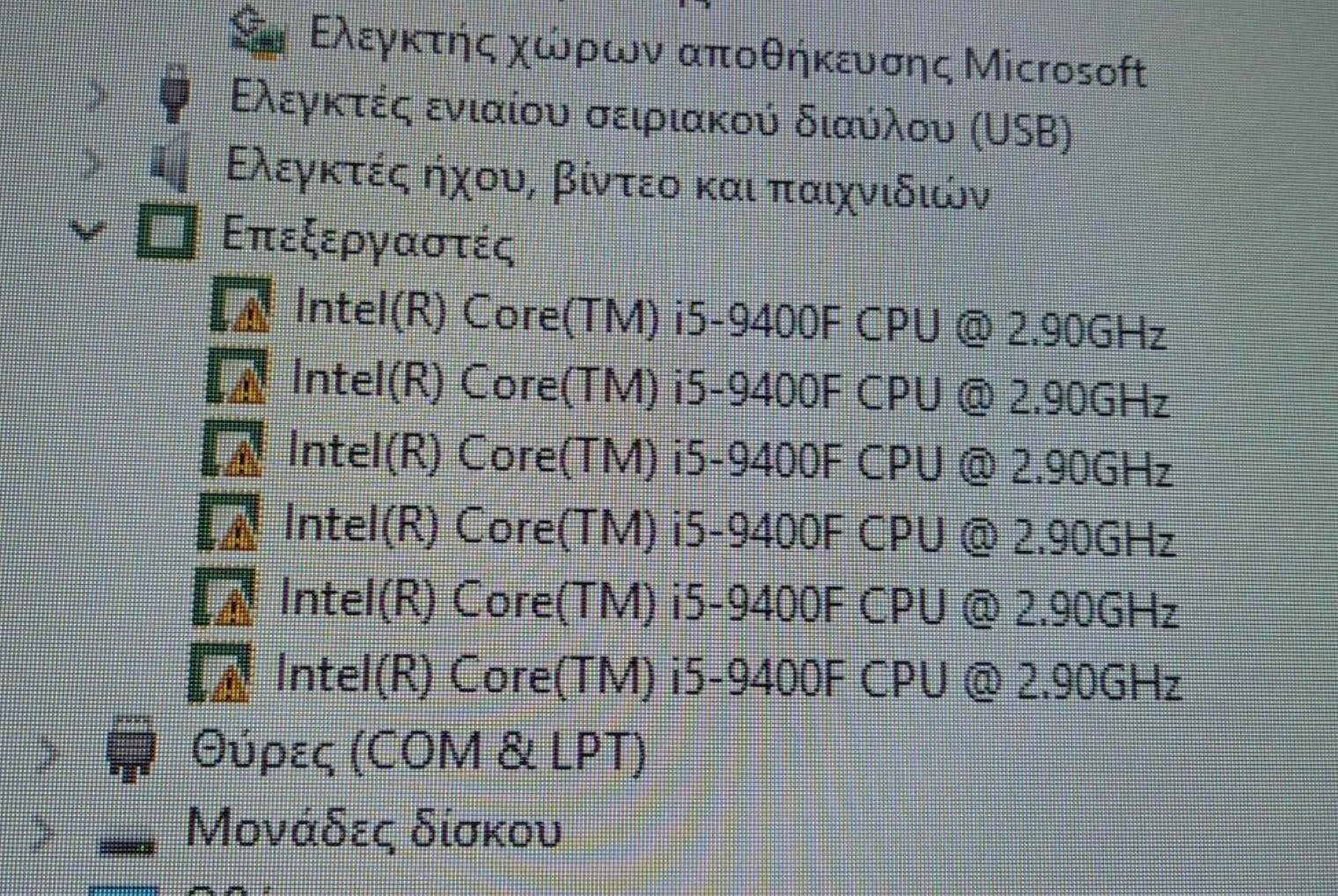 triplex1 Δημοσ. 1 Μαρτίου 2022 Δημοσ. 1 Μαρτίου 2022 16 λεπτά πριν, Apollonian είπε Καλησπέρα, στον επεξεργαστή του υπολογιστή της δουλειάς μου, μου εμφάνισε πρόσφατα αυτά τα θαυμαστικά στον επεξεργαστή. Δεν τα είχε ξαναεμφανίσει, σε τί μπορεί να οφείλεται? Είναι ανησυχτικό? Τί μπορώ να κάνω για να τα διώξω? Για να στα βγαλει κατι δεν παει καλα σε θεμα hardware , οι θερμοκρασιες τι λενε το κοιταξες? κοιτα και drivers της Intel το τελευταιο που σε ειπα δινει η ιντελ Resolution Note The following method can be used in any device showing a yellow exclamation point to update the driver. Follow these steps: Open Device Manager. Click Processors. Expand Processors. Click on any of the instances of the processors. Right-click and choose Update driver.