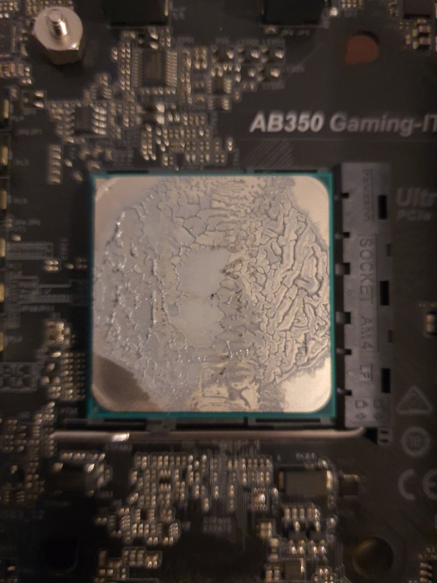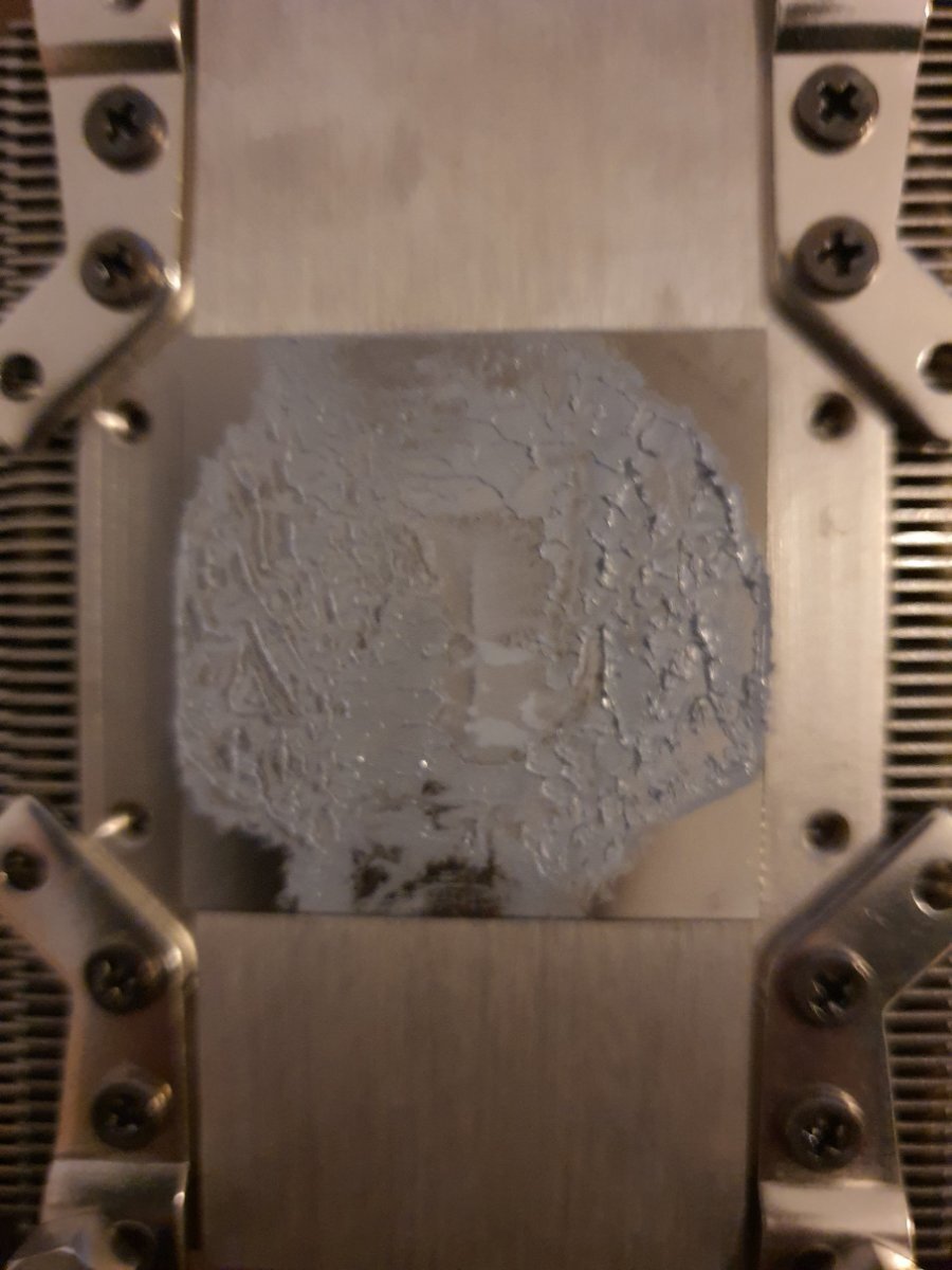 therock Δημοσ. 26 Μαρτίου 2022 Δημοσ. 26 Μαρτίου 2022 Ειχα κανει ενα παλιοτερο τοπικ οπου δεν ανοιγει ενα pc μου καθως κανει power cycle και επανεκκινει καθε 30 sec. Μην επεκταθουμε ομως σε αυτο καθως εχω κανει troubleshoot στα παντα (εχω δοκιμασει αλλα 2 τροφοδοτικα, εχω βαλει πανω αλλη καρτα γραφικων κτλ) εκτος απο μητρικη-επεξεργαστη (ryzen 1600x-cryorig c7 cooler asrock b350 itx fatality). Πριν παρω καινουριο σετ (εχω κανει νεο τοπικ παρακατω για αυτο και εχω σχεδον καταληξει τι θα παρω) θελω να δω μηπως γινεται κατι και το σωσω. Ξεκουμπωσα την ψυκτρα και φαινεται αυτο? Μας λεει κατι η εικονα η εστω μπορω μα δω κατι πανω δτον επεξεργαστη που να μαρτυρα προβλημα? Φαινεται πως η παστα δε καλυψε ολη την επιφανεια αλλα δε ξερω αν αυτο λεει και κατι. Δε μπορεσα να κανω κατι καλυτερο γιατι η ψυκτρα ειχα ενα περιερφονκουμοωμα που καθως την ευθυγραμιζζεις στον επεξεργαστη πρεπει να προσαρμοζεις ταυτοχρονα κατι παξιμαδια στη πισω μερια απο τη μητρικη και φοβηθηκα αν πεταγα και αλλη παστα θα ξεχειλιζε και θα σταζε Μια σκεψη ειναι να δκουπισω τη παλια παστα και να τη ξανακουμπωσω... μπας και