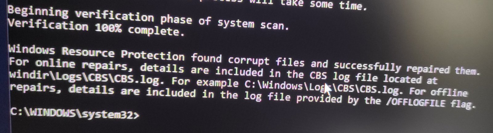 Ξανά έτρεξα την εντολή και μου λέει ότι τα windows  δεν εντόπισαν παραβιάσεις.