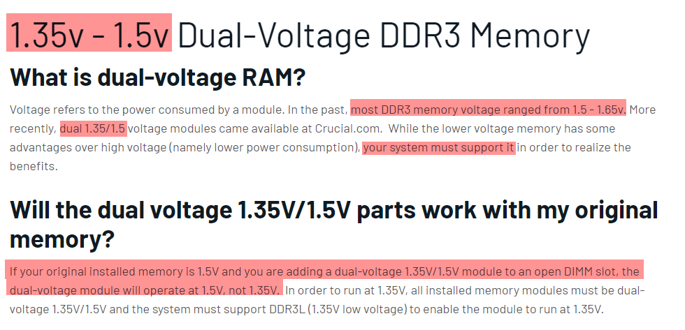 comfuzio Δημοσ. 6 Μαΐου 2022 Δημοσ. 6 Μαΐου 2022 11 λεπτά πριν, kostas_anes είπε Εφόσον μιλάμε για DDR3, όλες τρέχουν στην ίδια τάση, οπότε δεν ξέρω γιατί το κάνεις τόσο θέμα Πέραν αυτού, να επισημάνω ότι όσο παλιότερο το σύστημα, τόσο περισσότερες προσευχές να κάνεις. Αν μιλάμε για σύστημα 2012 και μετά, θα έλεγα πως είναι πολύ καλή η πιθανότητα να παίξει χωρίς θέμα στα 1333-1600MHz. Αν μιλάμε για τίποτα 1st gen Intel πχ ή έτοιμο σύστημα, αυτά είναι πολύ δύσκολα στις μνήμες και ειδικά με 4 στικάκια το πιο πιθανό είναι να μην δουλέψουν. Πες αναλυτικά τι σύστημα είναι CPU, RAM, Mobo κτλ, να σου πω μια γνώμη. Not true at all! https://www.crucial.com/support/articles-faq-memory/what-is-dual-voltage-memory έχω εδώ δίπλα μου έναν FX8350 με 2x4GB DDR3 @2133Mhz το οποίο θέλει να ανεβάσεις τάση για να παίξει σε αυτήν την ταχύτητα. αν έχουν διαφορετικές τάσεις που δεν είναι απίθανο, μπορεί απλά να μην κάνει boot όπως ειπώθηκε πιο πριν αλλά μπορεί και να έχει πυροτεχνήματα. Το τελευταίο το είχαμε στην δουλειά σε ένα dell pc με έναν i3 που είχε 1 module και βάλαμε 2ο. Δεν την έκανα εγώ την αλλαγή γιατί το είχα γράψει στο ticket ότι είναι άλλο voltage αλλά εγώ το έγραψα, αυτός που το έβαλε με έγραψε 🙄 Το λέω μόνο για λίγο προσοχή, ποτέ δεν έβλαψε. Μακάρι να παίξει με την μια. 1