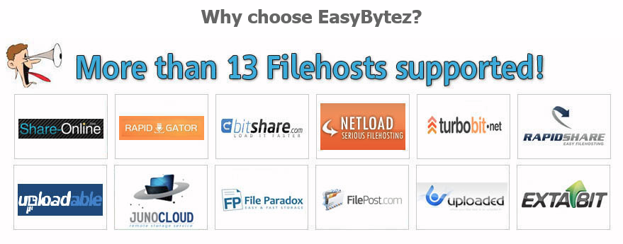 Και η easybytez υποστηριζει 13 hosters, χωρις προβληματικα λινκς τωρα η στο μελλον.