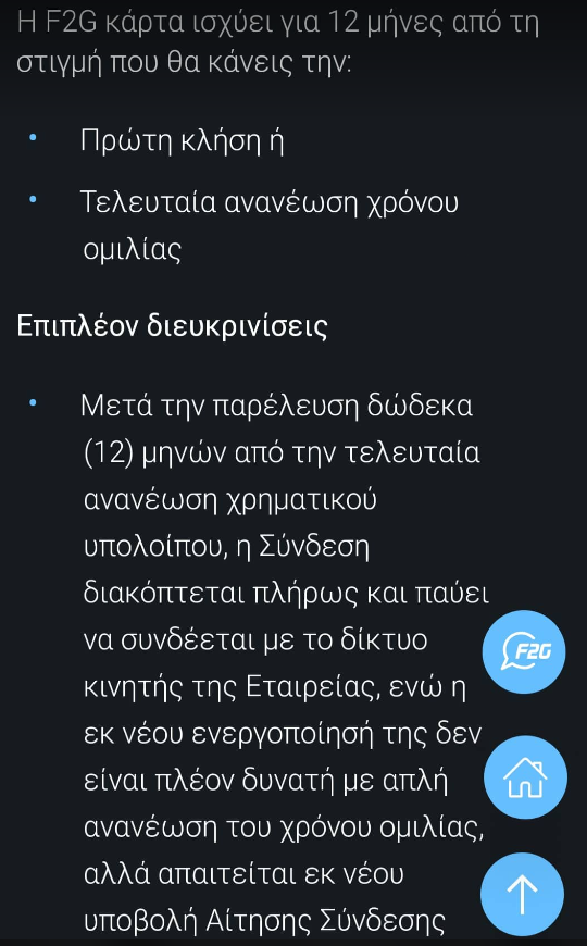 αν δεν βάλουμε καθόλου χρήματα, μέχρι πόσους μήνες μπορούμε να κρατήσουμε τον αριθμό F2G?