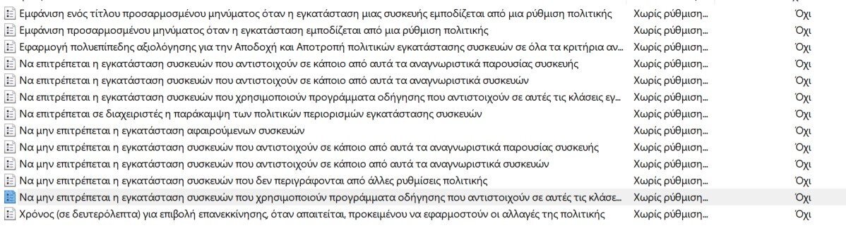 pavloa Δημοσ. 16 Ιουνίου 2022 Μέλος Δημοσ. 16 Ιουνίου 2022 (επεξεργασμένο) 30 λεπτά πριν, _Theo_ είπε Κάνε ακριβώς αυτά που σου λέει σε αυτό το κομμάτι των οδηγιών, μην μπλέξεις με registry καλύτερα. Βρες τα hardware ID΄s, καταχώρησε τα στην ειδική φόρμα των Windows, πάτα οκ και κάνε restart. Έτσι θα μπλοκαριστεί η GPU από το να κάνει update. Αλλά αν θελήσεις να το κάνεις χειροκίνητα θα πρέπει να την ξεμπλοκάρεις πάλι. Θα δοκιμάσω αυτό αν είναι... Απλά επειδή το έχω στα ελληνικά πιο πρέπει αν επιλέξω απο όλα αυτα? Στο pc με τα windows pro όταν εκτελώ αυτό gpedit.msc το ανοίγει κανονικά.. Στα home δεν το βγάζει, μου βγάζει οτι δεν βρέθηκε. Επίσης εδώ που λέει update the Group Policy settings on the client πρέπει να κάνω και αυτό? Επεξ/σία 16 Ιουνίου 2022 από pavloa