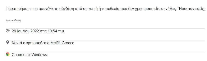 apostolos22 Δημοσ. 29 Ιουλίου 2022 Δημοσ. 29 Ιουλίου 2022 Στης περισσότερες σελίδες όταν κάνεις login σε νέα συσκευή ή browser σου στέλνουν αυτό το email. Για να μην το στέλνουν αποθηκεύουν cookies. Παλαιότερα μπορεί να μην έστελναν και γι'αυτό το λόγο να σου φαίνεται περίεργο τώρα. Εσύ αυτό που πρέπει να κοιτάς είναι την ώρα που γράφει το email και σε δεύτερη μύρα την τοποθεσία μιας και δεν είναι πάντα ακριβής (πχ σε εμένα πάντα βγάζει τον δίπλα δήμο). Το email μπορεί να αργήσει να έρθει οπότε δεν μας ενδιαφέρει αυτή η ώρα. Τώρα αν θες περισσότερη ασφάλεια μπορείς να χρησιμοποιήσεις two factor authentication, απλά να προσέχεις μην κλειδωθείς απέξω.