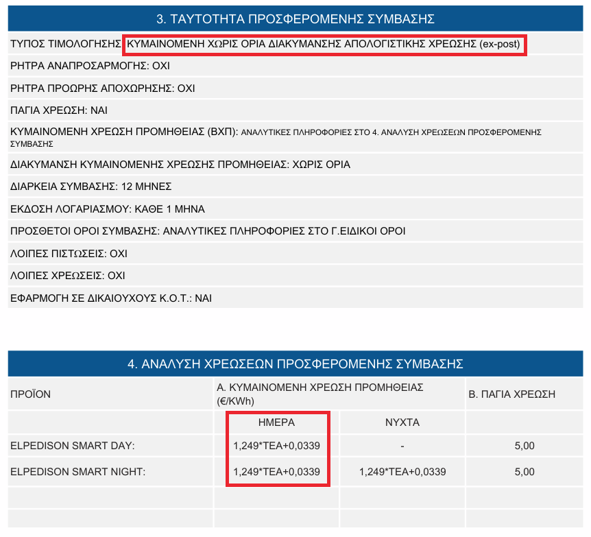 Βλέποντας φευγαλέα την αίτηση εντόπισα πως γράφει "ΤΥΠΟΣ ΤΙΜΟΛΟΓΗΣΗΣ: ΚΥΜΑΙΝΟΜΕΝΗ ΧΩΡΙΣ ΟΡΙΑ ΔΙΑΚΥΜΑΝΣΗΣ ΑΠΟΛΟΓΙΣΤΙΚΗΣ ΧΡΕΩΣΗΣ (ex-post)" και επίσης δεν έχει την χρέωση που ανακοινώθηκε 0,099€ αλλά έναν τύπο. Είναι ένα από τα νέα "χρωματιστά" τιμολόγια σωστά; Δεν θα ίσχυάν από την νέα χρονιά;