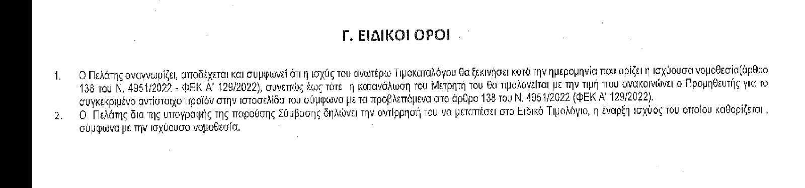 Ο πελάτης δια της υπογραφής... Δηλώνει την αντίρρηση του να μεταπείσει στο ειδικό τιμολόγιο...