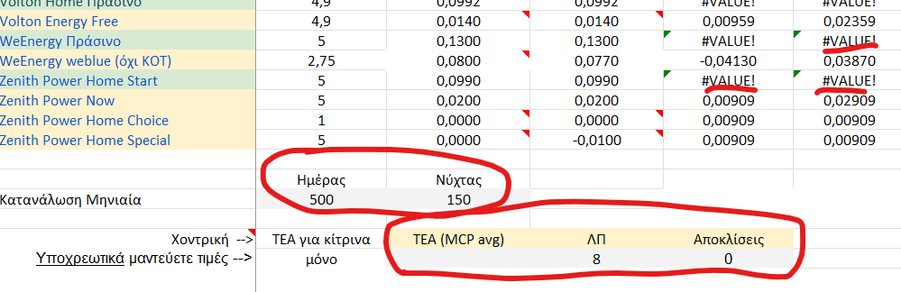 Αλήθεια; Το παραφόρτωσα; Μόνο τις κιλοβατώρες χρειάζεται να αλλάξεις και την ΤΕΑ στο μικρό πινακάκι κάτω δεξιά. Μετά όπου βλέπεις πράσινο είναι το φθηνότερο.