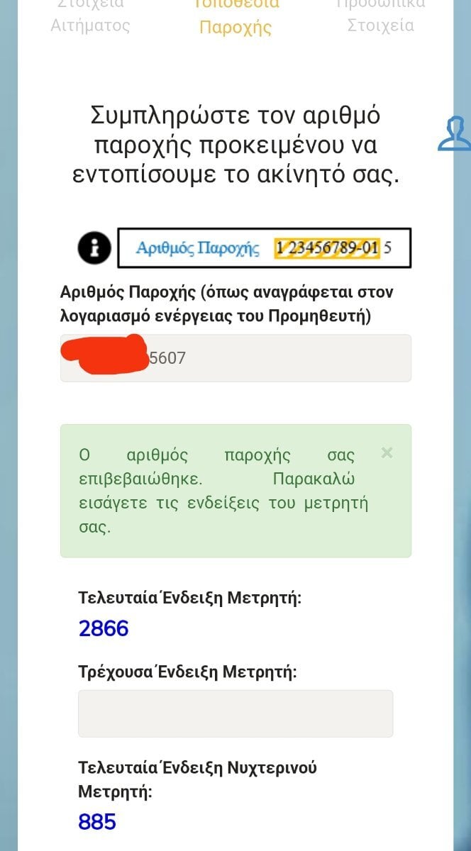 Αυτά στις 28/12. Προχθές τσεκαρα τον αριθμό παροχής και είδα ότι το τελευταίο ψηφίο έχει αλλάξει, ωστόσο δεν μπορώ να κάνω εγγραφή στο myelpe και επίσης στο mydeddie δεν έχουν περαστεί οι μετρήσεις που έδωσα με φωτογραφία. Υποψιάζομαι ότι έχει κολλήσει η μετακίνηση.