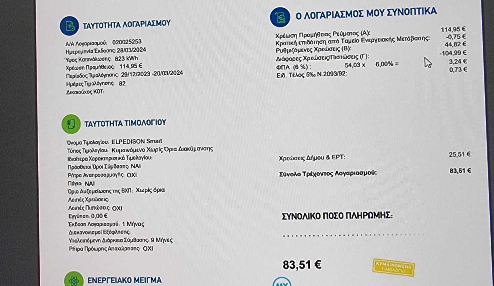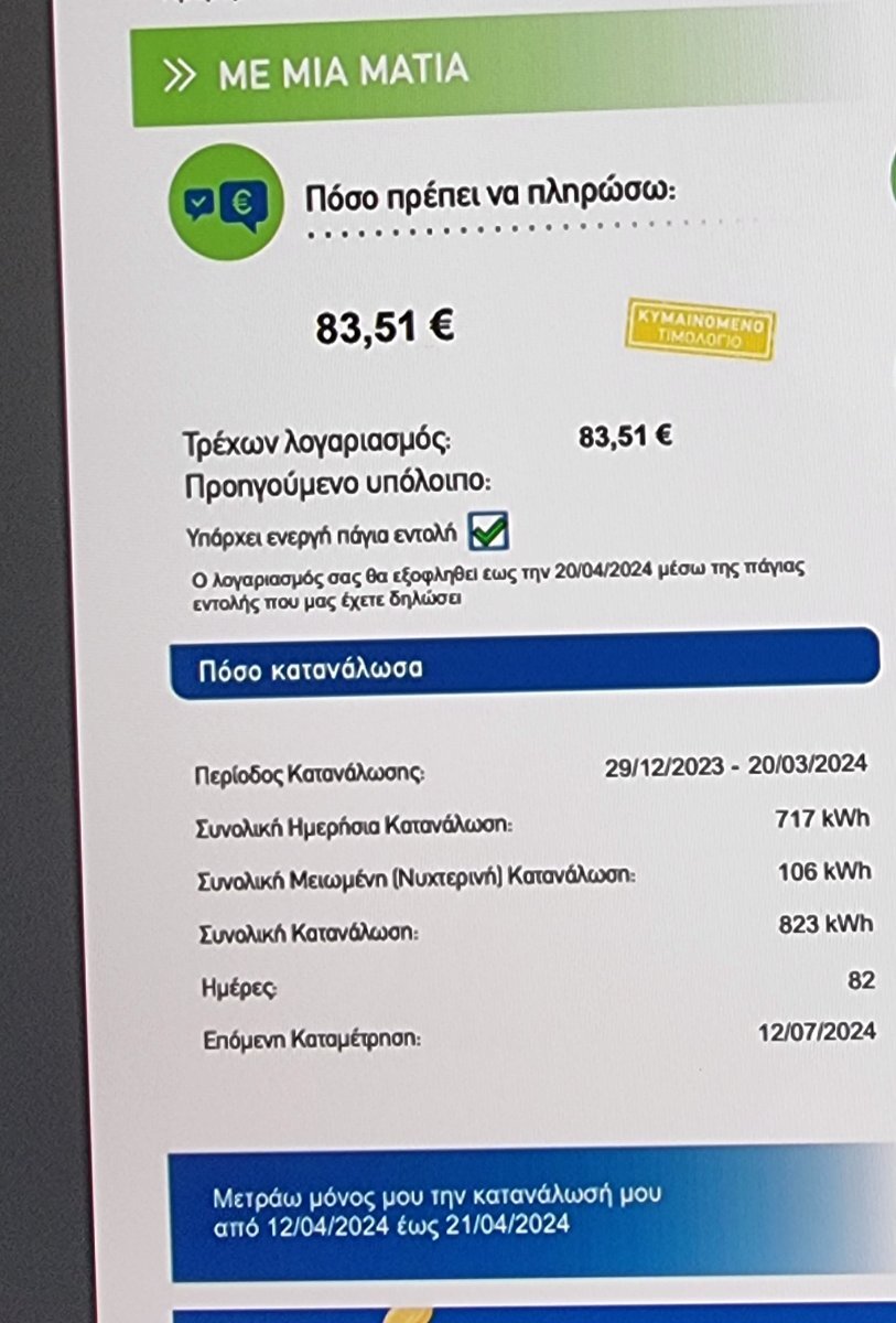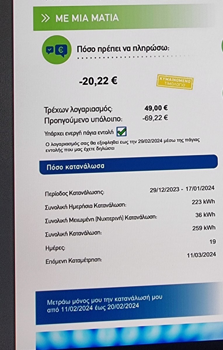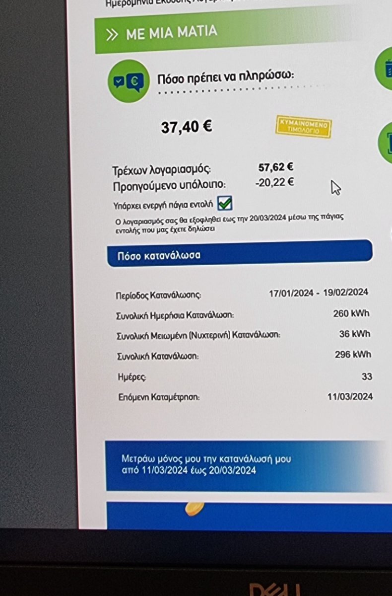 3 μήνες έμεινα 82 μέρες σύνολο. Είχα πάρει τα 100+20 σούπερ μάρκετ. Και έκανα τράμπα 20/3 για Ηρων. Εκεί βγαίνει στο περίπου γιατί είναι και κάτι ΦΠΑ δεν ξέρω εάν τα υπολογίζουν. Το θέμα είναι πως με 270 που ναι ο τελικός έπρεπε να ταν κάνα 60-70 και είπα μην το - 24 του 3 λογαριασμού 6φωτογραφια παίζει κάτι με αυτό. Η με κάτι άλλο που μου διαφεύγει