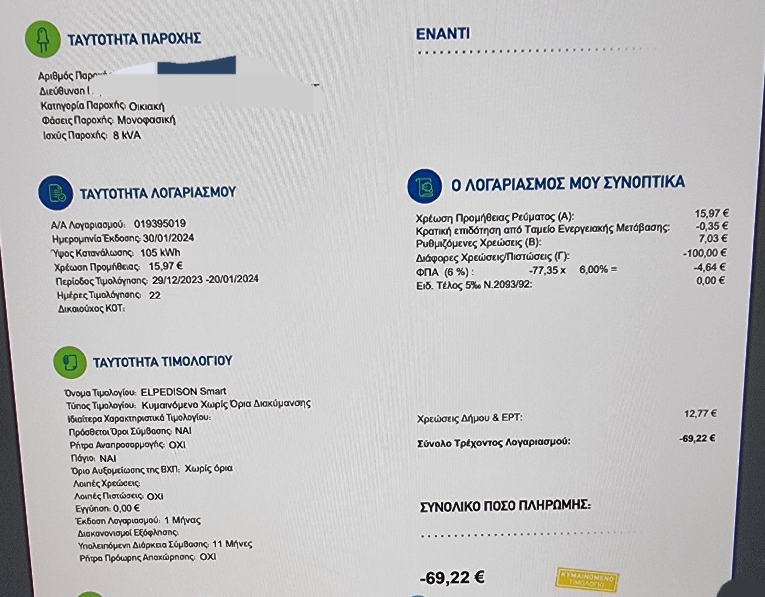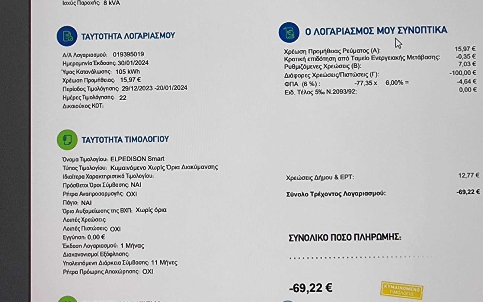 Τα δώρα 100 + 5Χ20 μπήκανε.Τελικά για 91 μέρες και 631 κιλοβατώρες πλήρωσα σύνολο 6,65 ευρώ.Και εις ανώτερα.😁Έχω πάει ήδη Ήρων για το 50αρι και συνεχίζουμε.Δυναμη ΠΑΜ.