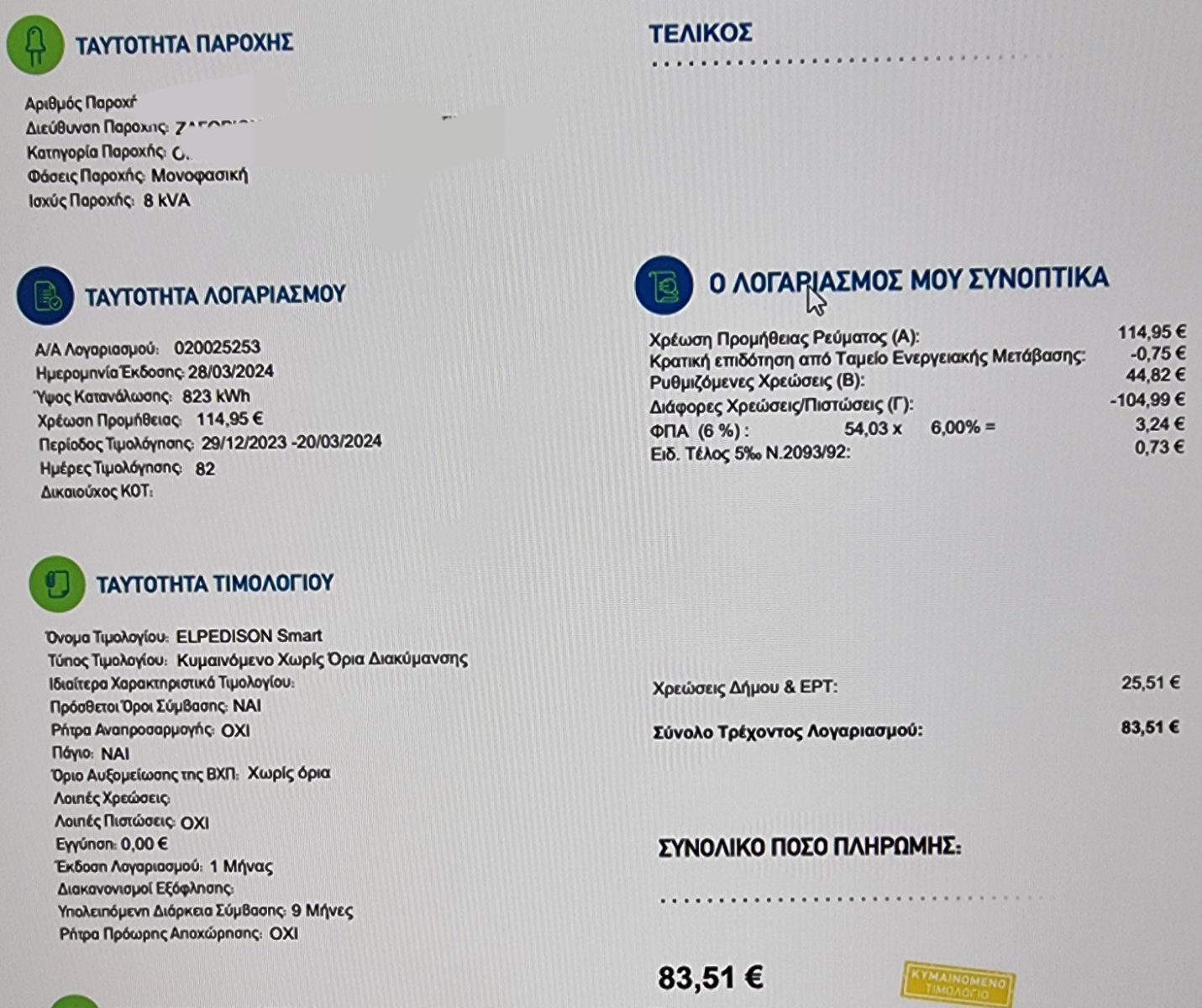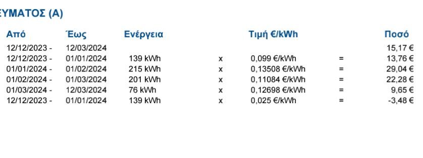 270kw  εννοούσα πως τον υπολόγιζα τον τελικό κάνα 70.αλλα ίσως αλλάξανε τίποτα ρυθμιζόμενες ή υπολόγιζα λάθος και είχα μείνει στα πιο παλιά σε χρεώσεις που μου μουνα πιο κάτω σε τιμή kw