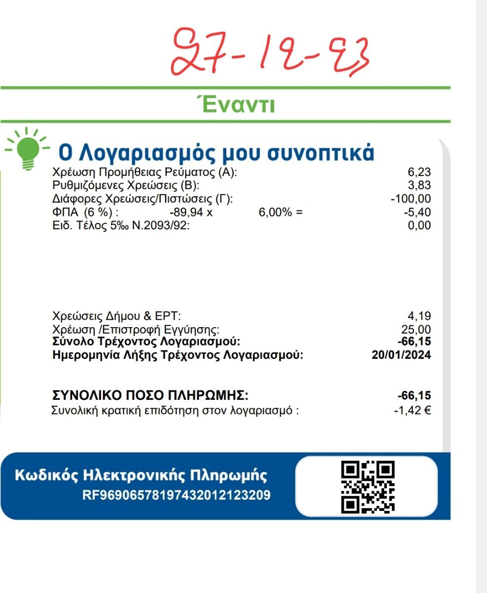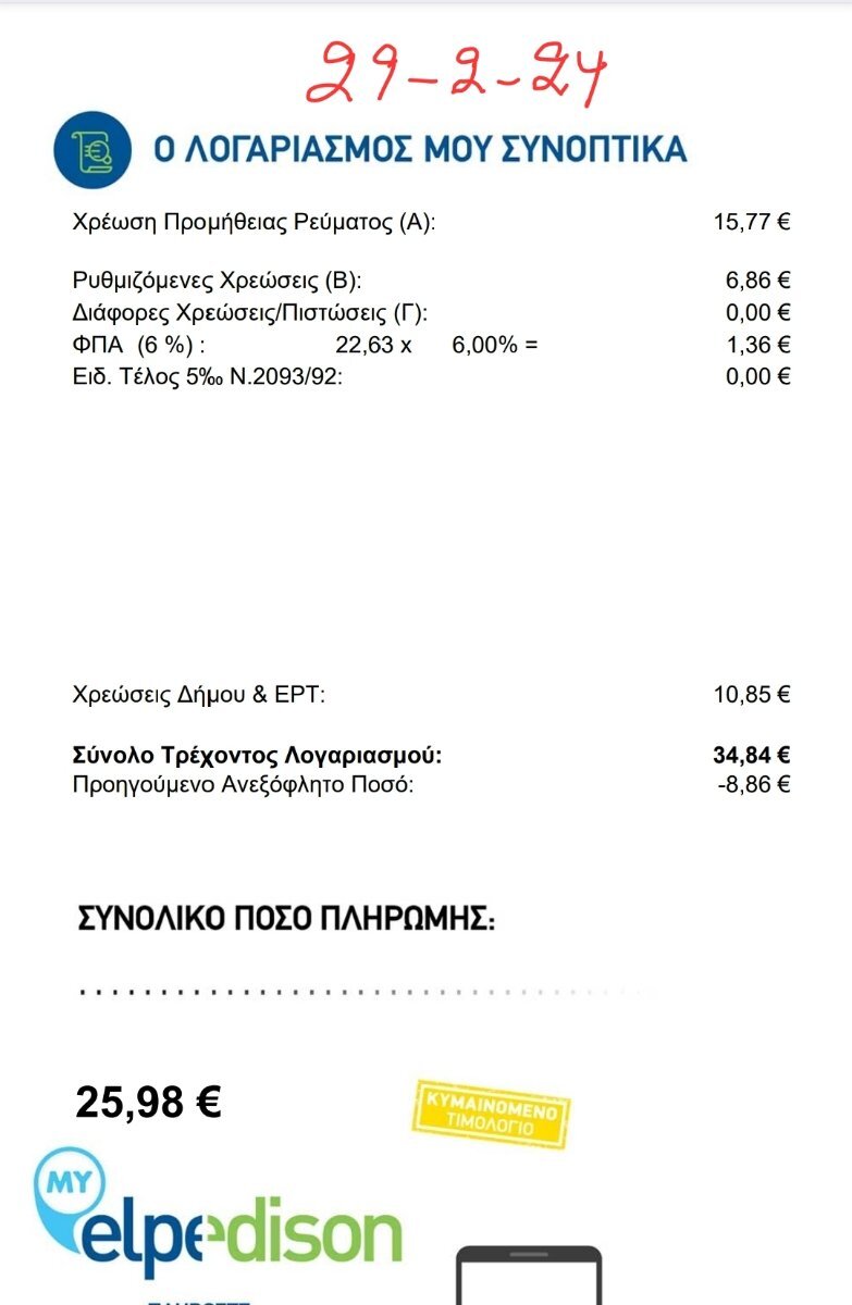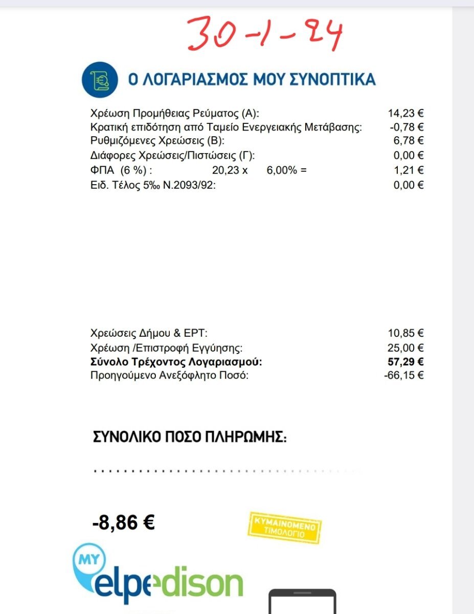 Στο άθροισμα Α+Β αφαιρώ και κάτι μικροποσα από επιδότηση που ήταν έως Δεκεμβρίο η κάποιο φορο;Όχι να φανταστώ. Και ουσιαστικά εγώ ζητάω τα 25.83 πισω; ή τα 25.83-22.65;