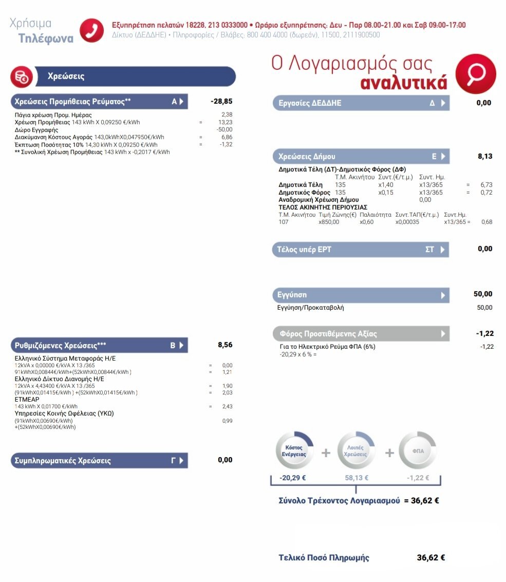 Εν συνεχεία, αν ο τελικός έχει περίοδο κατανάλωσης μέχρι 3/4, τότε κοίτα αν θα σου επιστρέψουν 1 μέρα δημοτικά τέλη και ερτ. Αλλιώς κάνεις τότε αμφισβήτηση και ζητάς έκτακτο λογαριασμό, για πίστωση 1 μέρας για δήμο-ερτ. Και μετά ζητάς το πιστωτικό ποσό να συμψηφιστεί με τη νέα παροχή.