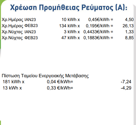 καλησπερα μου βγηκε ο λογαριασμος της elpedison και εναντι , με το παλιο προγραμμα elpedison electricity home night και βλεπω για πρωτη φορα οτι εχει χρεωση ημερας και νυκτας αποκλειστηκα και μονο του φεβρουαριου. ( περιοδος 3/2-1/3/2023 ) .  Ρωτησα στην εξυπηρετηση πελατων και μου ειπανε οτι να δινω την μετρηση καθε 1η του μηνα για να μην βλεπω στον λογαριασμο μου αλλον μηνα! και να μην σπανε σε 2 μηνες . Πολυ καλο και χρησιμο αυτο ! για να γυρισουμε στην αναλυση το πινακα Α των λογαριασμων  τους σωστους οπως πριν με την χρεωση ρητρας . Δεν θα γινεται μοιρασμος τον κιλοβατωρων και ετσι νομιζω οτι θα φαινεται πιο αναλυτικα και θα ειναι πιο δικαιος ο λογαριασμος.