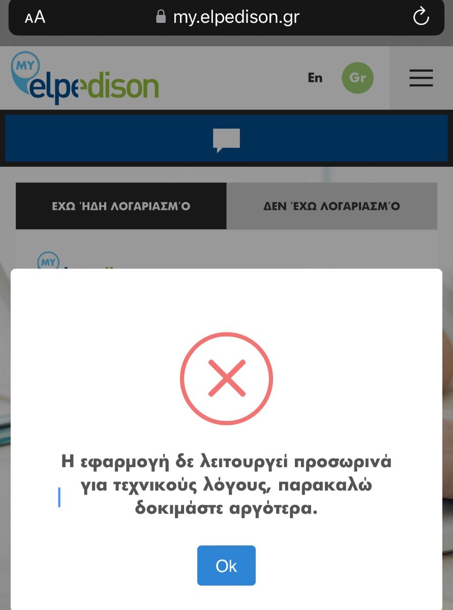 Όταν πάω να συνδεθώ από την ιστοσελίδα μου εμφανίζει συνεχώς το παρακάτω μήνυμα…