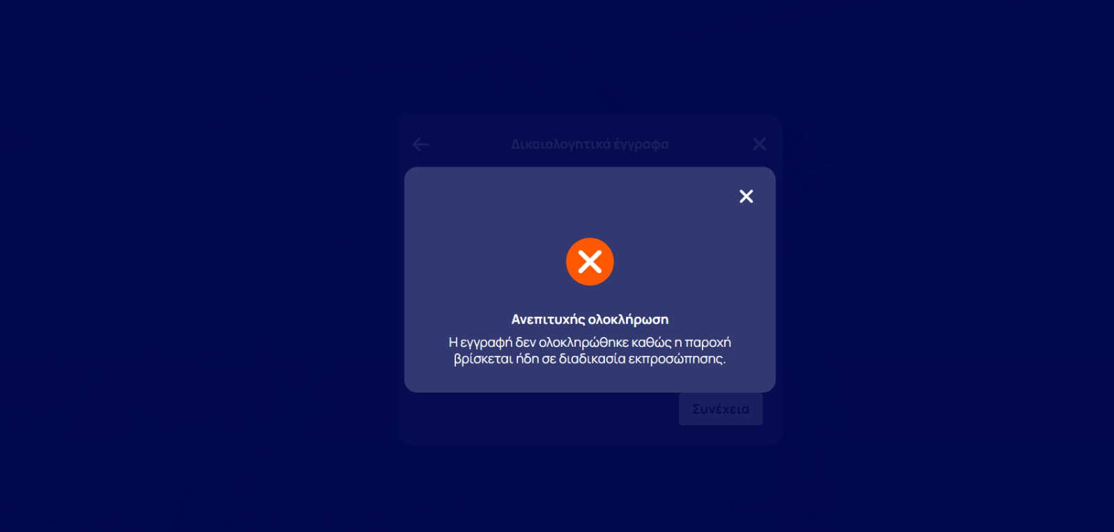 προσπάθησα να κάνω έναρξη εκπροσώπησης για το Generous Guarantee με e-contract και μου εμφανίζει το εξής μήνυμα. Τι σημαίνει αυτό;