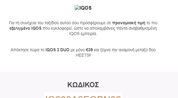 SilentVoice Δημοσ. 9 Ιουλίου 2021 Δημοσ. 9 Ιουλίου 2021 Αν ενδιαφέρετε κανείς ή έχει κάποιον γνωστό που θέλει να πάρει το IQOS, κουπόνι για την συσκευή. Το πόσταρα πρώτα και στο αντίστοιχο νήμα για Iqos Πόστ πρώτα εδω και μετά με πμ ο κωδικός. 3