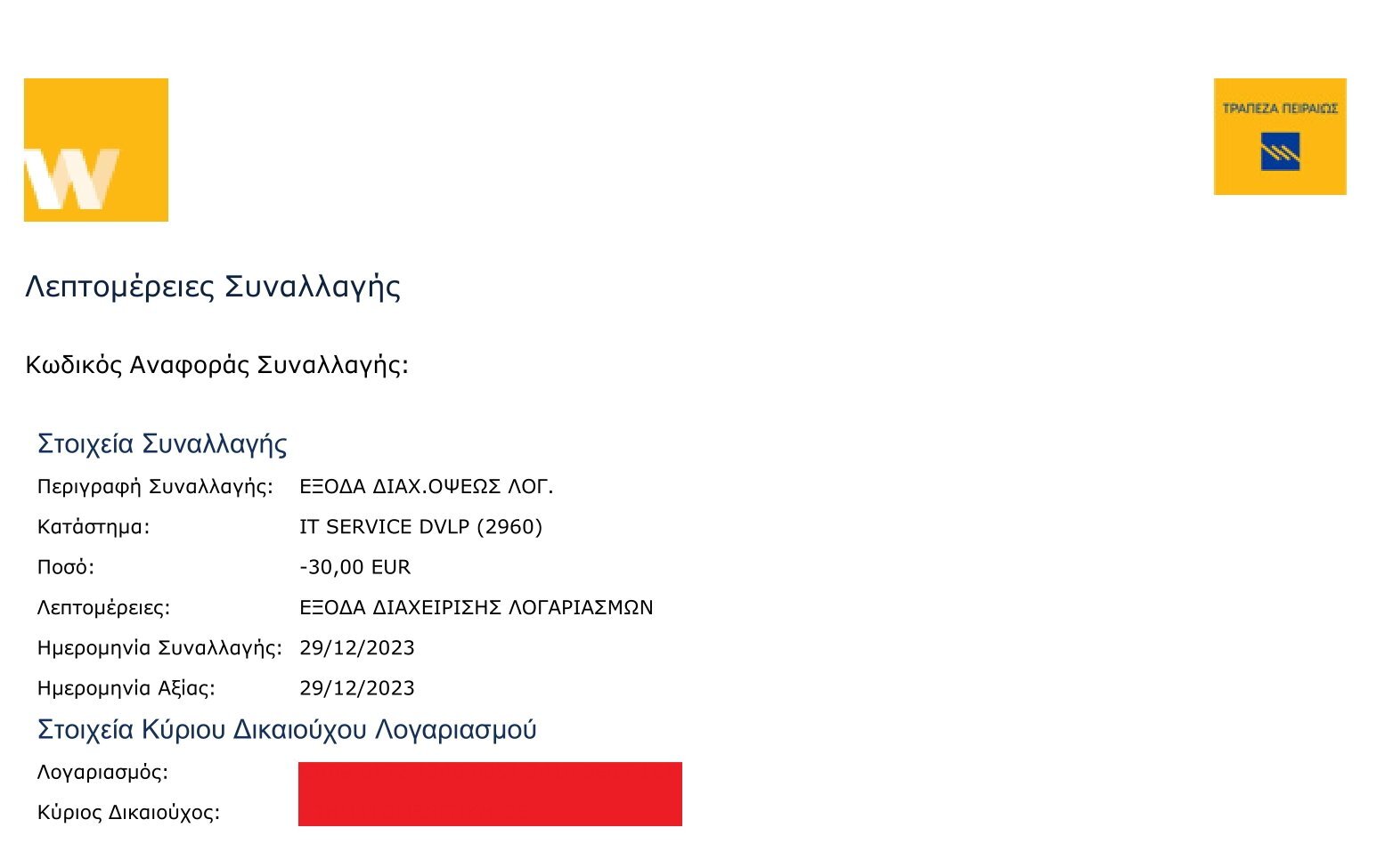therock Δημοσ. 6 Φεβρουαρίου 2024 Δημοσ. 6 Φεβρουαρίου 2024 On 16/02/2023 at 11:43, Fotis_Greece said: To εχουμε πει πολλες φορες, στην Πειραιως μπορεις να ανοιξεις εμπορικο λογαριασμο χωρις μηνιαια εξοδα (και επι τοπου ζητα να μην σου ερχονται κινησεις με αλληλογραφια στο σπιτι καθε εξαμηνο που τα χρεωνουν 2€) Ρε παιδια ανοιξα οπως ειπατε το λογσμο Πειραιως, και σημερα μπηκα να κοιταξω τελευταιες κινησεις και ειδα ενα -30 Ευρω 29 Δεκεμβρη σαν εξοδα Διαχειρισης λογαριασμου!!! Τι σημαινει αυτο, οτι αντι για μηνιαια εξοδα εχουν φιξ 30 ευρω το Χρονο για να τηρεις απλα ενα Επαγγελματικο Λογαριασμο? Επαιρνα ολη μερα στο καταστημα που τον ανοιξα να ρωτησω και δεν επιασα γραμμη
