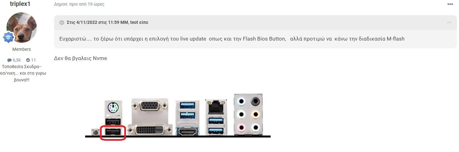 triplex1 Δημοσ. 6 Νοεμβρίου 2022 Δημοσ. 6 Νοεμβρίου 2022 4 λεπτά πριν, teot είπε Ευχαριστώ.... κατατοπιστικότατος Απλά εδώ κατάλαβα (προφανώς λάθος) ότι πρότεινες και εσυ το Live update... με την εικονα σε δειχνω που θα βαλεις το usb που ρωτησες 1