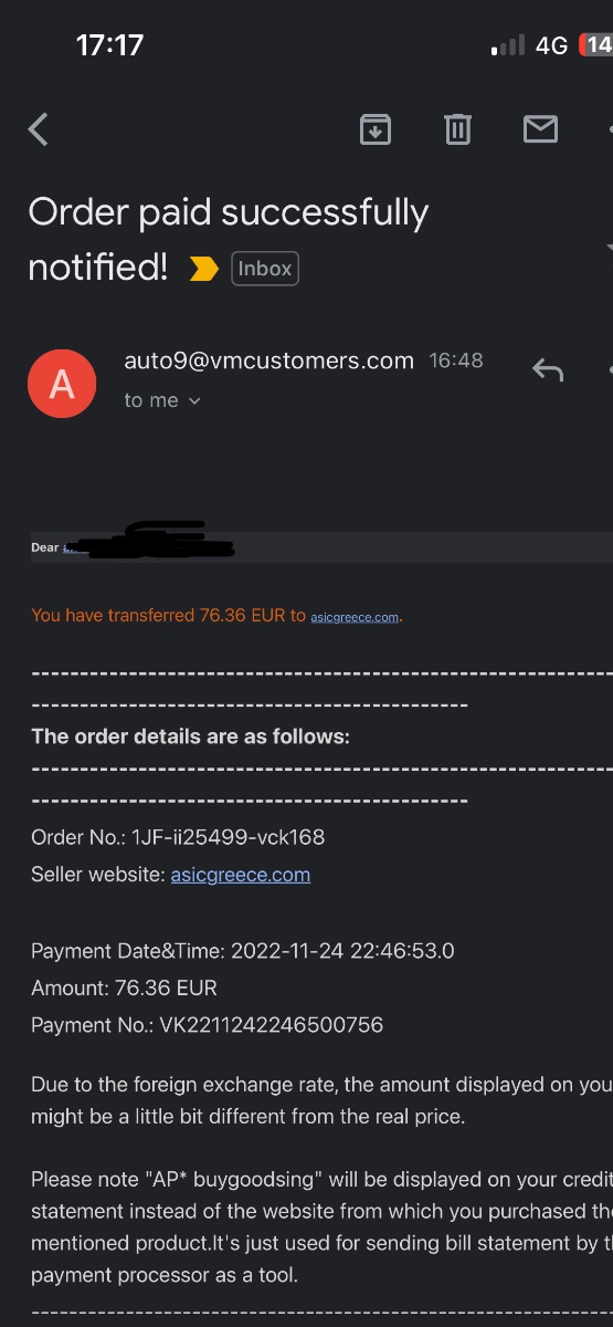 Από το μέιλ επιβεβαίωσης,το οποίο φαίνεται παρακάτω κατάλαβα ότι την πάτησα.