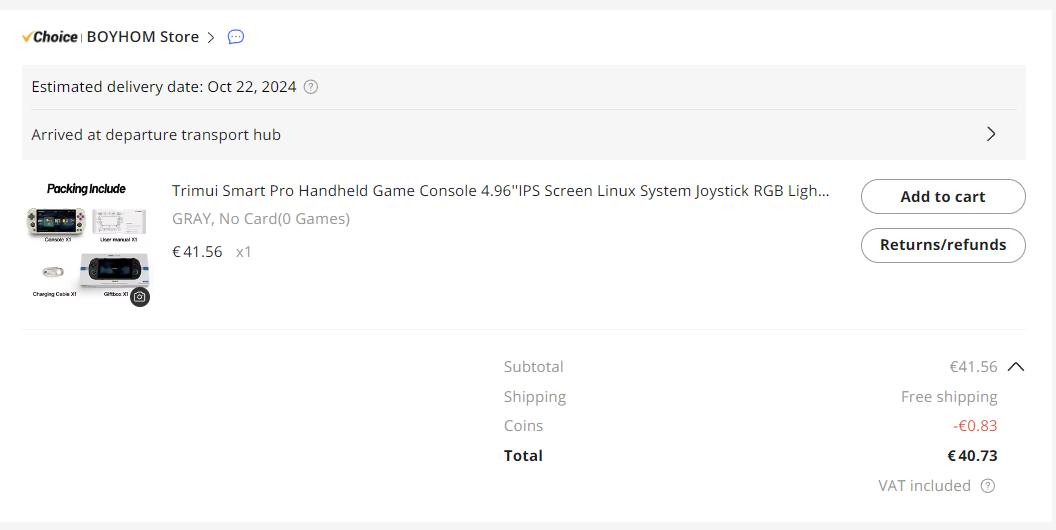 Κι εμένα το Trimui Smart Pro των 40 euro είναι ήδη στον δρόμο εδώ και 2 μέρες με DPD tracking. Για όσους είχαν αμφιβολίες λόγω της χαμηλής τιμής.