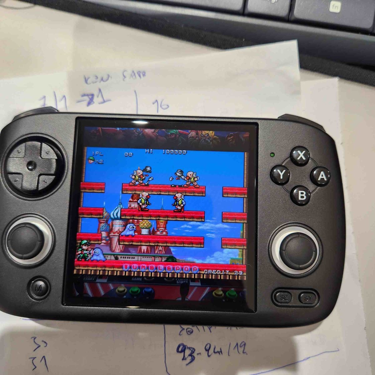 Ήχος/συνδεσιμότητα: Μην περιμένετε μπάσα και Dolby Atmos. Αρκετά basic hifi speakers όπως θα περιμέναμε στην κατηγορία του. Ικανοποιητική ένταση. Έχει BT το οποίο χρησιμεύει μόνο για controllers, WiFi το οποίο είναι πρακτικά άχρηστο γιατί δεν έχει ούτε ενσωματωμένο scrapper η Anbernic. Έχει hdmi έξοδο, θύρα ακουστικών και δύο υποδοχές για κάρτες μνήμης. Μία για το OS και μία για τα παιχνίδια. Εγώ χρησιμοποιώ δύο κάρτες, μπορεί κάποιος να το δουλέψει μόνο με μία.