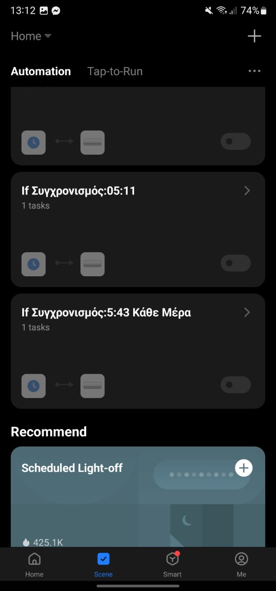 Marcos_Aurilius Δημοσ. 21 Δεκεμβρίου 2022 Μέλος Δημοσ. 21 Δεκεμβρίου 2022 4 λεπτά πριν, -WISE- είπε Αν δεις και την φωτογραφία από πάνω που ανέβασα, μπορείς να ορίσεις εσύ δικές σου "σκηνές" για το πότε θα ανοίγει και θα κλείνει όποια συσκευή θες. Εγώ στη φωτό σου δείχνω για παράδειγμα το A/C. Μία που το ορίζεις, μία που δεν ξανα ασχολείσαι. Αν σου πω ότι δεν είχαν φορτώσει πριν οι φωτο? Με κάλυψες, ξανά ευχαριστώ πάρα πολύ! 1