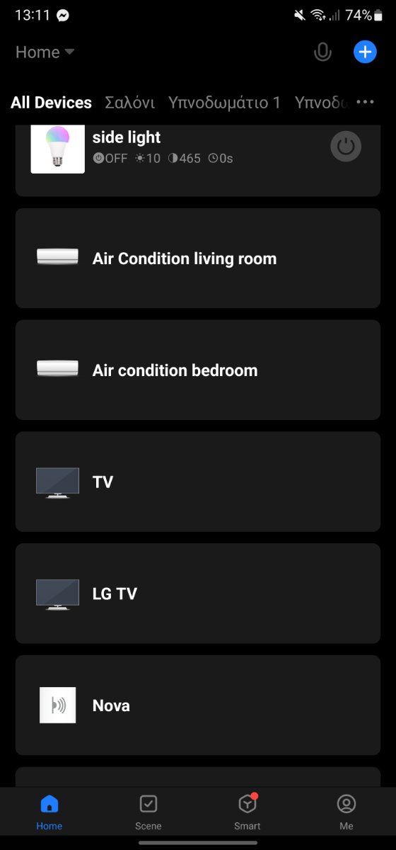 -WISE- Δημοσ. 21 Δεκεμβρίου 2022 Δημοσ. 21 Δεκεμβρίου 2022 (επεξεργασμένο) Όσον αφορά στα smart plugs ας μην σου πω ψέματα. Σίγουρα τα παιδιά στην ενότητα smart home θα ξέρουν. Εγώ έχω δει να χρησιμοποιούνται από φώτα και καφετιέρες μέχρι ενίδρυα. Πιθανόν θα κάνει και με την τιβί. Από κει και πέρα, η λύση του WiFi universal control είναι καραδοκιμασμένη από εμένα σε ό,τι έχει υπέρυθρες μέσα στο σπίτι. Μέσω της εφαρμογής το έχω βάλει να μου ανοιγωκλείνει τα a/c τις ώρες που θέλω και φυσικά κάνει και για την τιβί. Όλα γίνονται απομακρυσμένα και εκτός σπιτιού αν θες να ανοίξεις ή να κλείσεις ή να αλλάξεις κανάλια και ό,τι θες. Είτε με δεδομένα είτε με WIFI από το κινητό. Έχω δύο τέτοια μαραφέτια και τα είχα πάρει γύρω στα 15 ευρώ θυμάμαι. Υπάρχουν και φθηνότερα στο skroutz αλλά σου μιλάω για αυτά λόγω προσωπικής πείρας. Να και δύο φωτο από το περιβάλλον του app. Επεξ/σία 21 Δεκεμβρίου 2022 από -WISE- 1