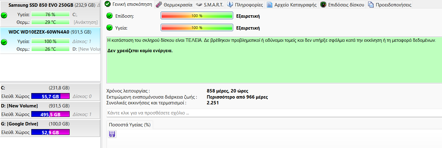 micos000 Δημοσ. 23 Δεκεμβρίου 2022 Δημοσ. 23 Δεκεμβρίου 2022 Για τον samsung υπάρχει το samsung magician. Για τον μηχανικό δες το hdsentinel στην trial έκδοση (είναι αρκετό) ή το δωρεάν CrystalDiskInfo και το HDTune. 1