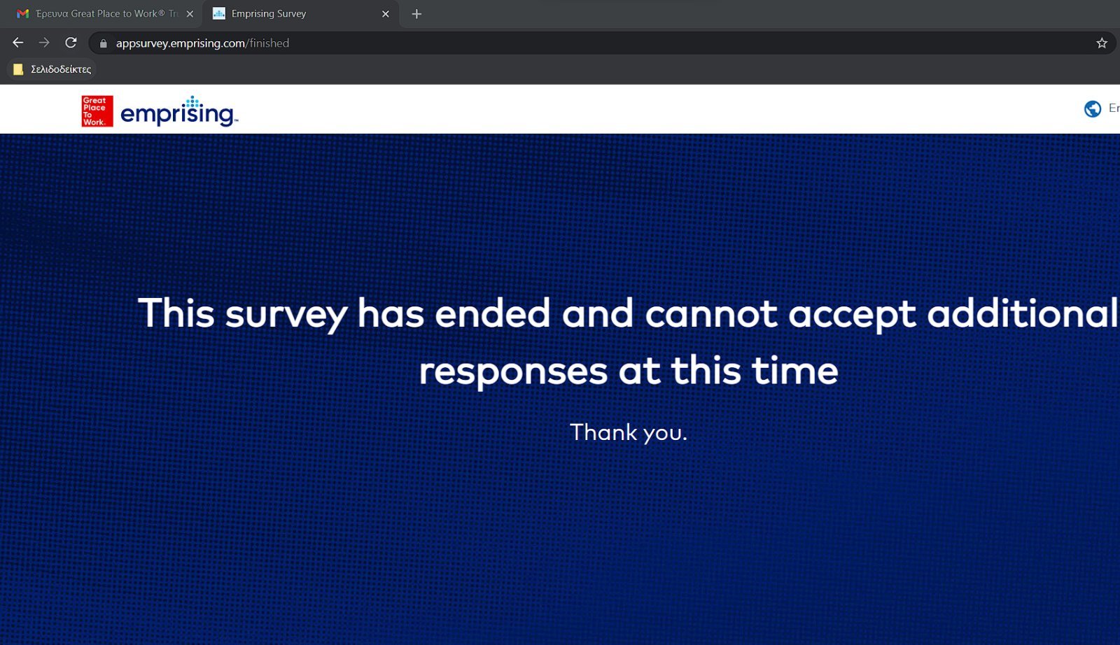 Επισκέπτης Δημοσ. 1 Ιανουαρίου 2023 Δημοσ. 1 Ιανουαρίου 2023 Όλες οι δημοσκοπήσεις πάντως με unique identifiers δουλεύουν, αλλιώς ο καθένας θα απαντούσε 15 φορές. Δεν ξέρουμε αν κάνουν την σύνδεση με το e-mail και αν μετά λένε στον εργοδότη ποιος απάντησε τι. Επειδή φαίνεται μεγάλη εταιρία αυτή που κάνει τις έρευνες, παράρτημα του Great Place to Work που είναι πολυεθνική, ας μην βγάζουμε αυθαίρετα συμπεράσματα. Μπορεί να έγινε, μπορεί και όχι.